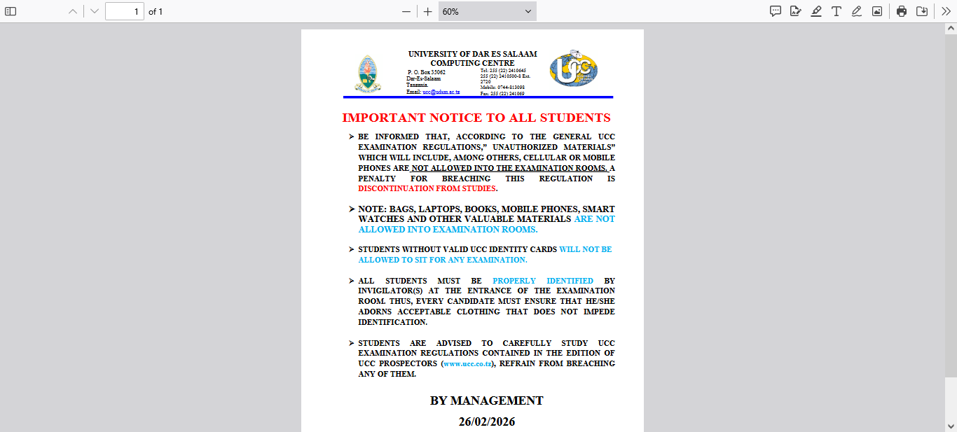 The allocation of examination numbers will take place from 02/03/2026 to 06/03/2026. Every student must ensure that they obtain their examination number within the specified period, as it is mandatory for sitting the examinations.